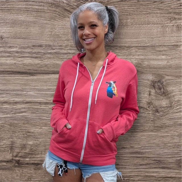 HEATHERED RED ZIP UP SWEATSHIRT - BESSIE LOGO ON THE BACK