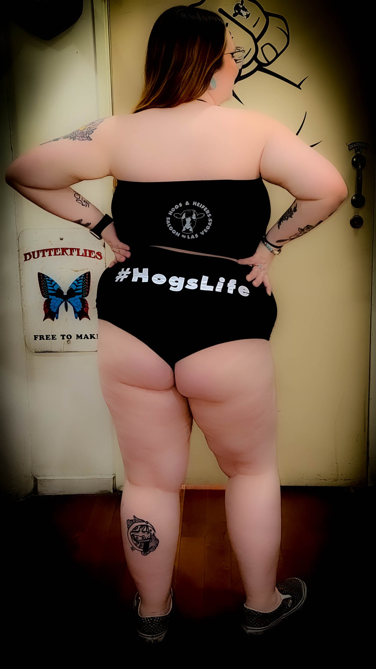 Boi short panties. Comes in black with Hogs & Heifers USA logo on the front, #HogsLife on the booty.