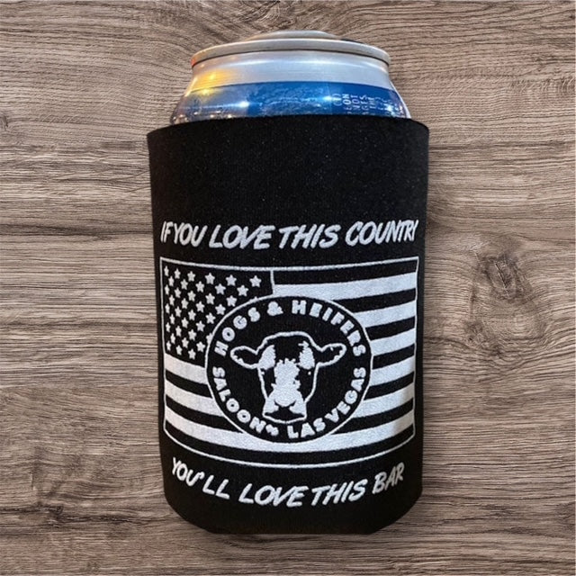 Show your love for this great country and Hogs & Heifers with our 'If You Love This Country' koozie. Featuring a patriotic design, this koozie is not only stylish but also insulated to keep your drinks cold for longer. Made with durable materials, it's built to last. Grab yours today and proudly display your patriotism at your next gathering!