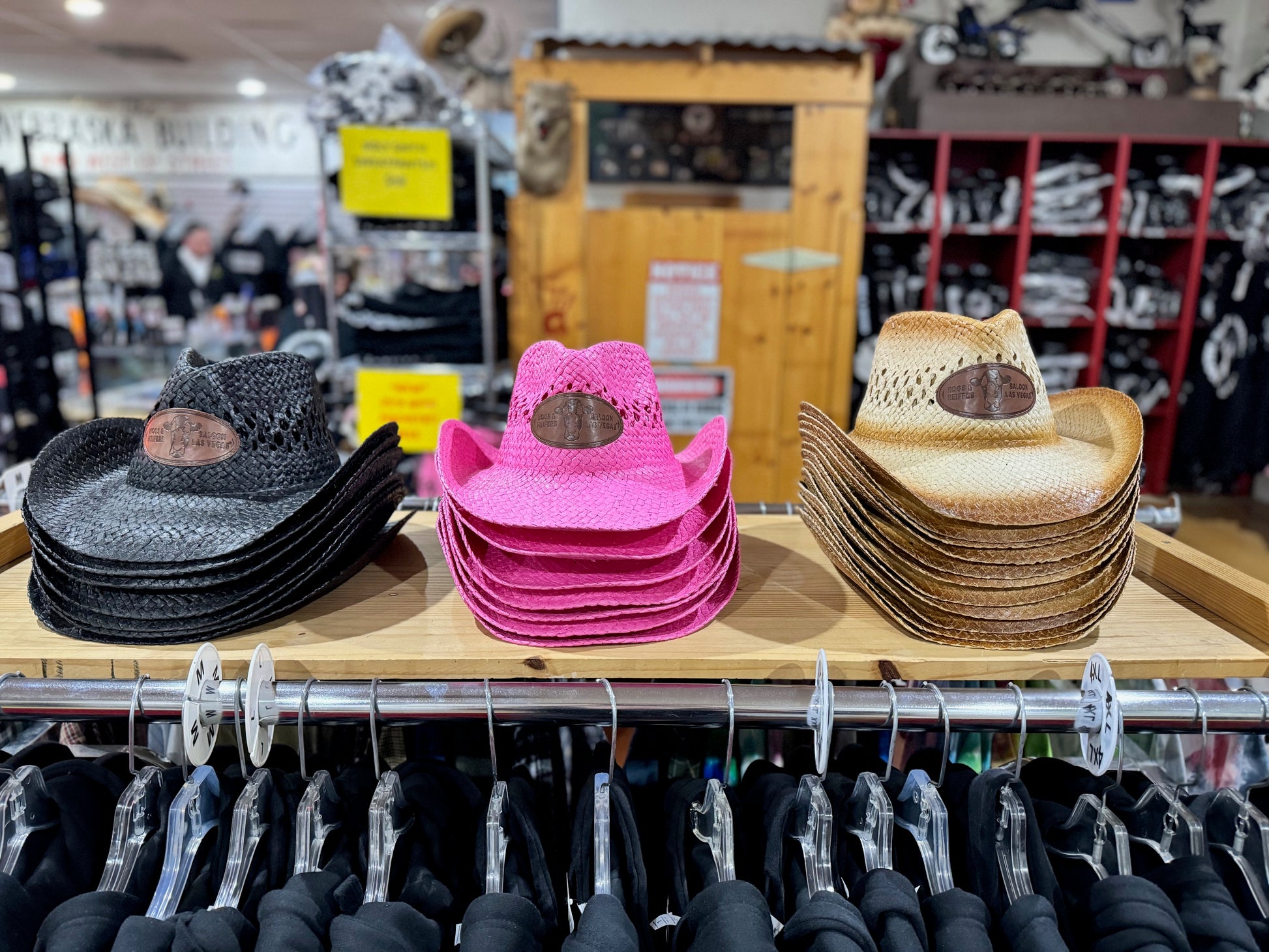 Complete your Western look with the Hogs & Heifers Straw Cowboy Hat. Available in pink, tan, or black, this stylish accessory will add a touch of cowboy charm to any outfit. Get yours now and saddle up in style!