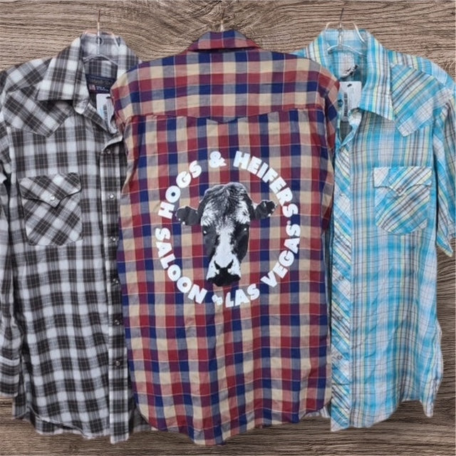 WESTERN PEARL SNAP BUTTON SHIRTS WITH HOGS LOGO ON THE BACK